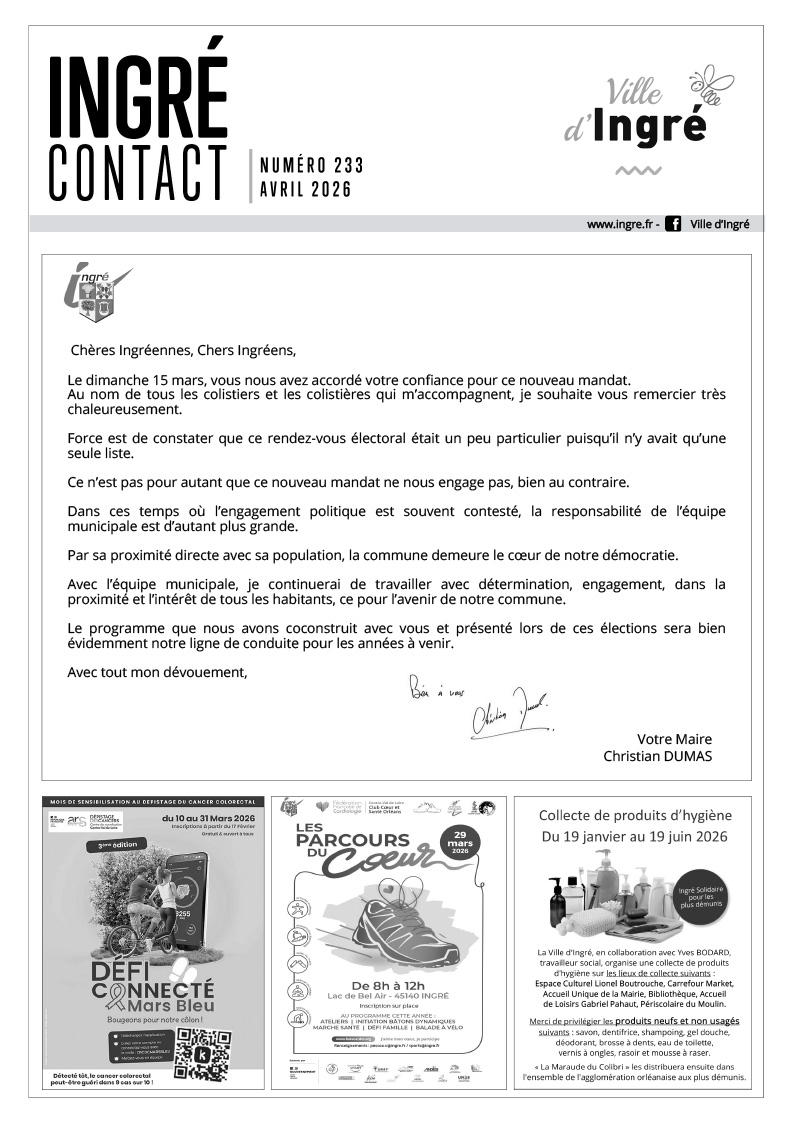 Ingré contact d'avril Information Revu et corrigé ! Ce n'est pas un poisson : des informations ont été modifiées depuis l'impression de votre dernier Ingré contact que vous allez ou avez reçu cette semaine dans votre boîte aux lettres. Voici donc la dernière version à consulter ci-dessous :