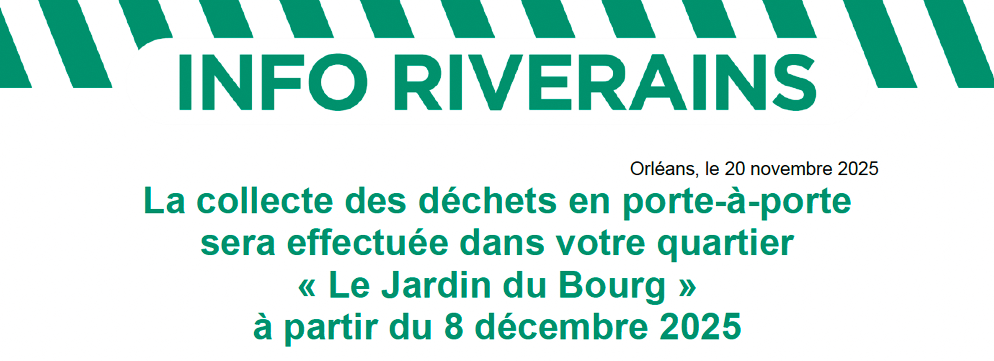 Urbanisme Information aux habitants du quartier « Le Jardin du Bourg » À partir du 8 décembre 2025, la collecte des déchets en porte-à-porte débutera dans votre quartier.