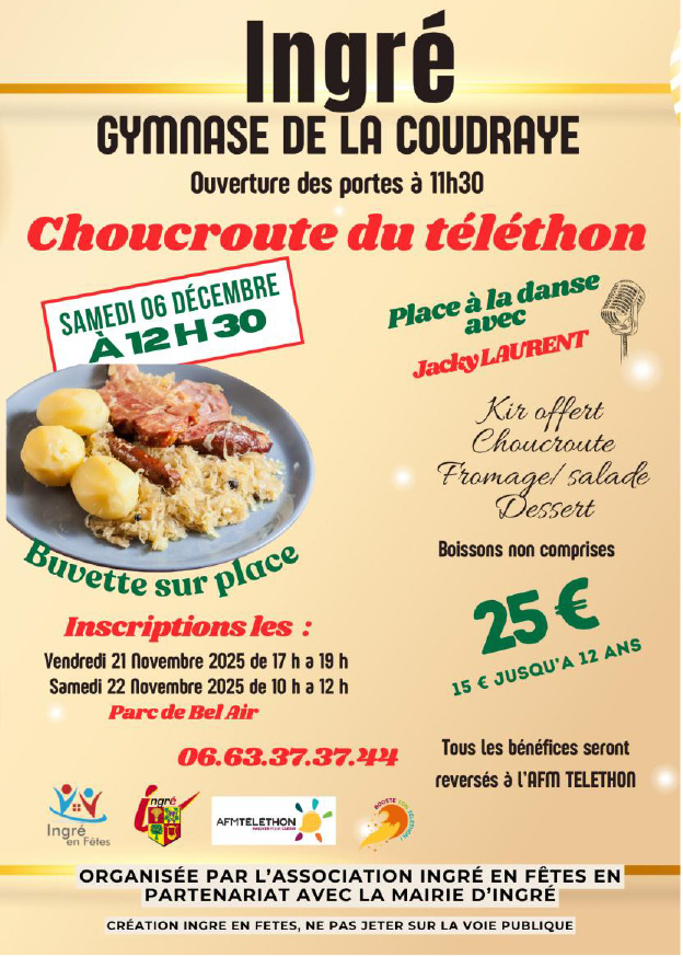 L’association Ingré En Fêtes vous propose une soirée "Choucroute" au gymnase de la Coudraye