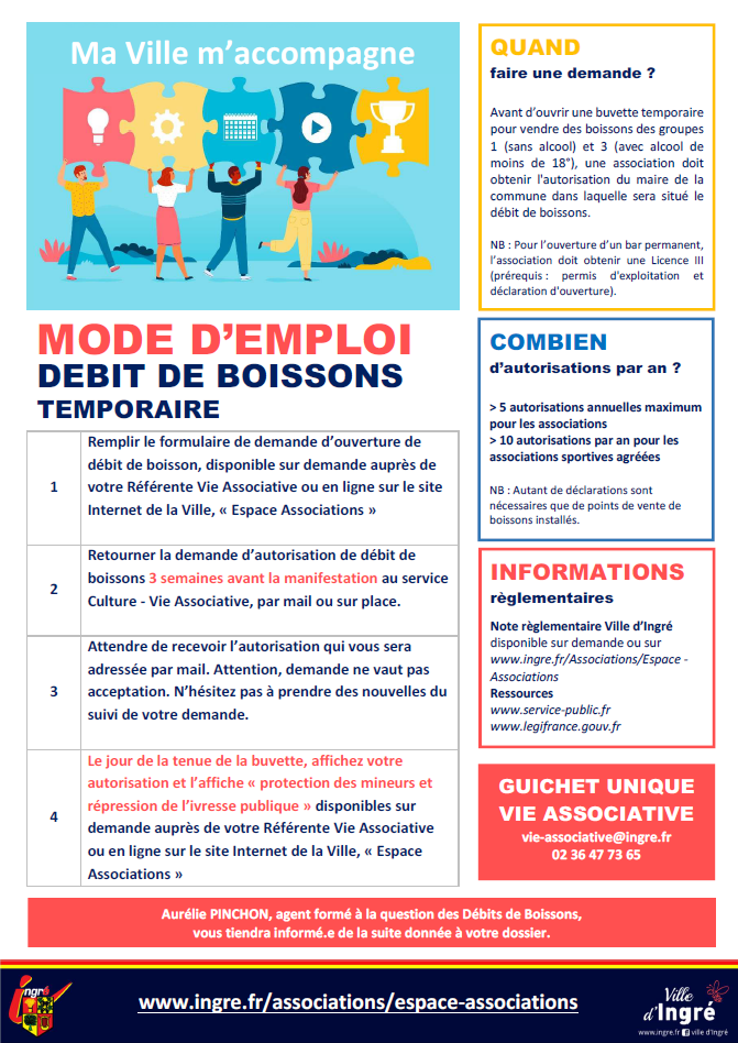 Pour l’ouverture d’un bar permanent, l’association doit obtenir une Licence III (prérequis : permis d'exploitation et déclaration d'ouverture). Pour plus d'information sur ce point, prendre rendez-vous auprès du service Culture - Vie Associtive.